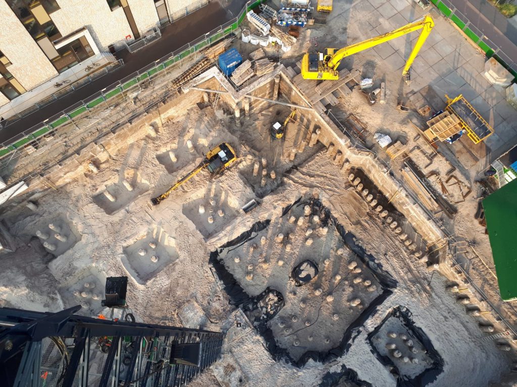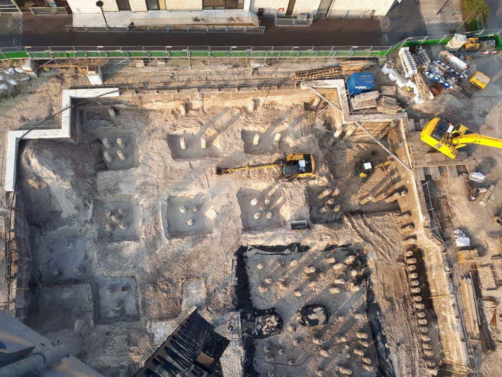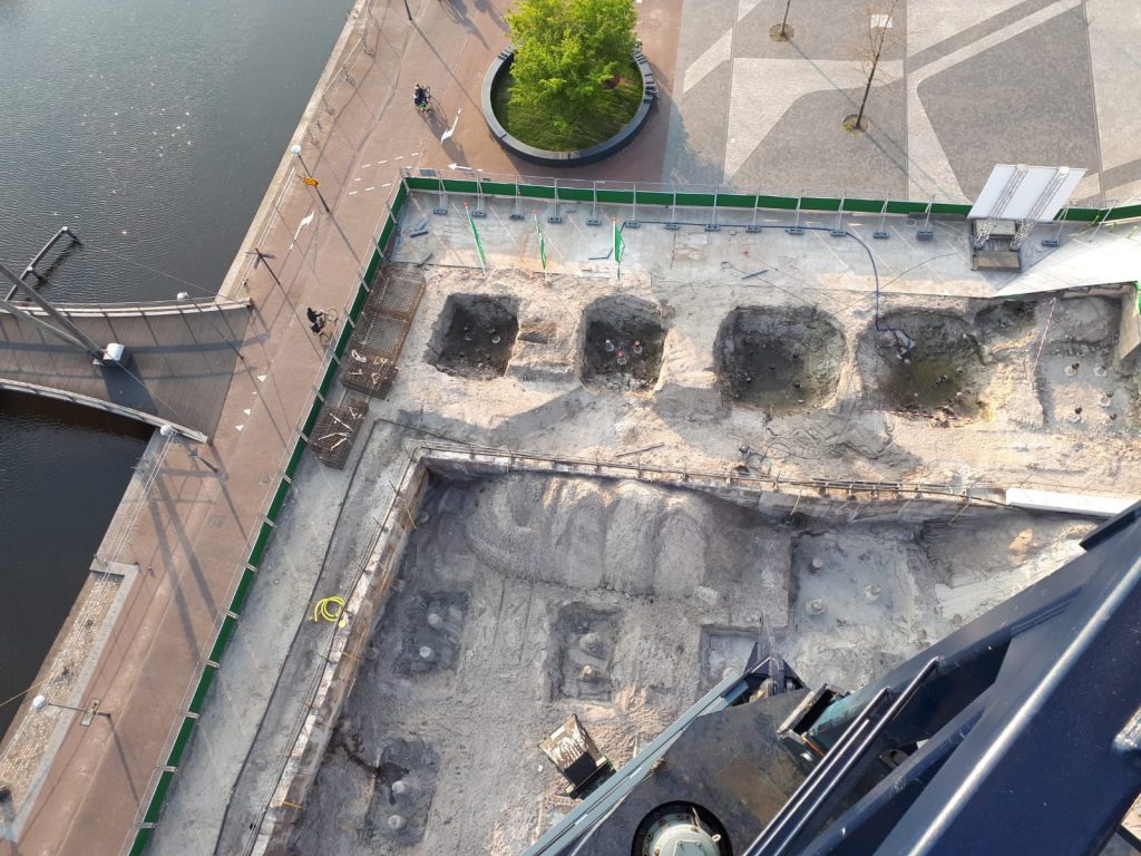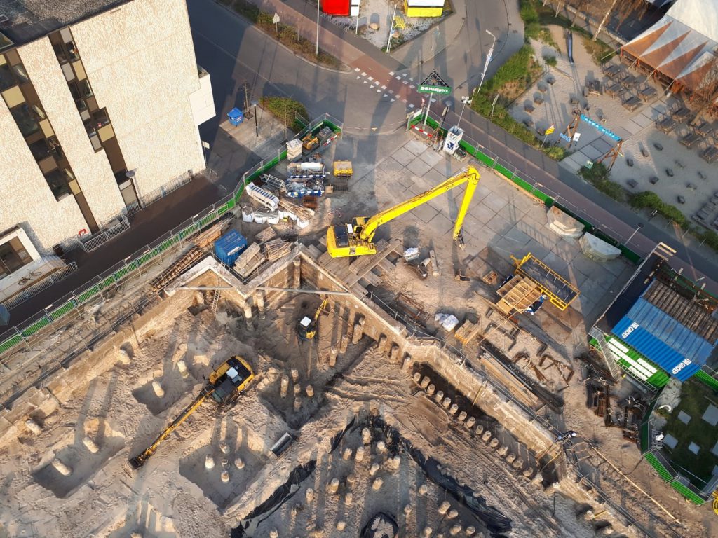 Binnenkort worden de werkzaamheden rondom de grondwerkzaamheden t.b.v. de bouwkuip bij het Eemerald afgerond. Het levert hele mooie foto`s op en de opbouw kan beginnen.